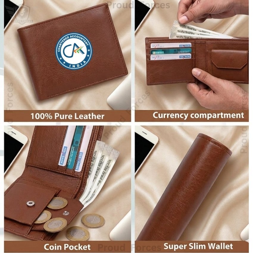 The Chartered Accountant (CA) Brown Leather Wallet for Men by Proud Forces is crafted from 100% genuine brown leather and designed for premium everyday use. Featuring a centered CA emblem sticker, this slim wallet offers organized storage for cash, cards, and essentials while maintaining a smart and professional appearance.
