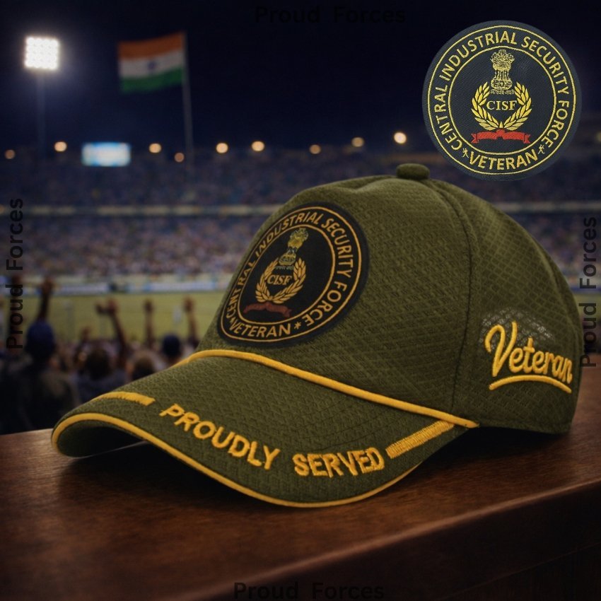 Proud Forces Premium Quality CISF Proudly Veteran Baseball Cap (Olive Green Color) is designed to honour the courage, discipline, and dedicated service of Central Industrial Security Force (CISF) veterans. Featuring the “Proudly Served” insignia with the CISF emblem, this premium cap is ideal for daily wear, veteran gatherings, official events, and respectful gifting—combining durability, comfort, and national pride.