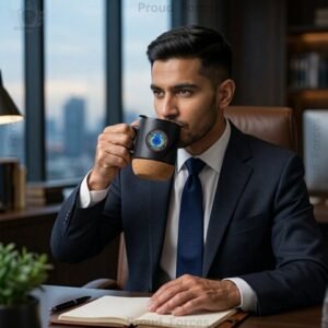The CRPF Veteran Matte Finish Coffee Mug with Cork Base by Proud Forces is a premium black matte finish mug designed for daily comfort, easy use, and a strong sense of identity. It features a centrally placed CRPF Veteran sticker and comes with an attachable and detachable cork base, making cleaning simple and practical. The leak-proof lid with slide opening allows convenient sipping, making this mug ideal for tea, coffee, and other beverages during office hours, travel, or daily use.