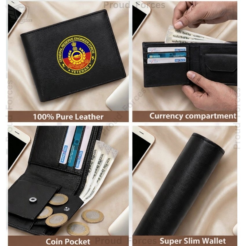 The GREF Veteran Black Leather Wallet for Men by Proud Forces is a premium classic wallet crafted from 100% genuine black leather, combining durability, elegance, and veteran-inspired pride. Featuring a centrally placed GREF Veteran sticker, this super slim wallet keeps your cash, cards, coins, and essentials organized, making it ideal for daily use, office, or travel.