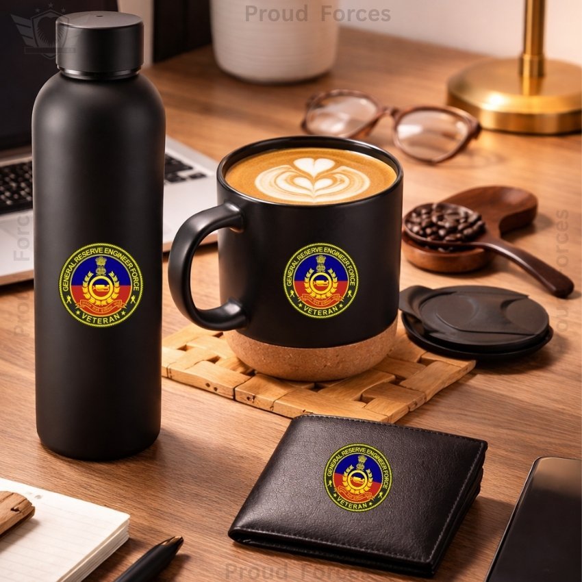 The GREF Veteran Premium Combo Pack of 3 – Bottle, Coffee Mug & Leather Wallet by Proud Forces is a premium everyday utility combo designed for comfort, durability, and daily convenience. This set includes a matte finish insulated water bottle, a matte black coffee mug, and a 100% genuine leather wallet, all featuring a centered GREF Veteran sticker for a matching premium look. It is ideal for office, travel, home, and gifting.