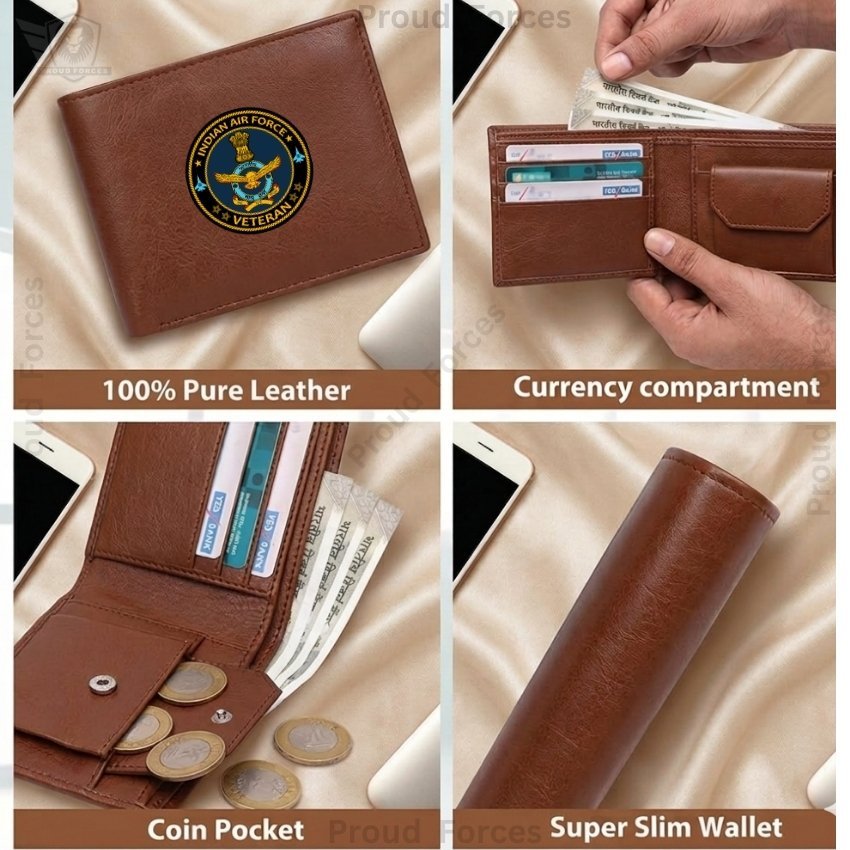 The Indian Air Force Veteran Brown Leather Wallet for Men by Proud Forces is a premium classic wallet crafted from 100% genuine brown leather, combining elegance, durability, and veteran-inspired pride. Featuring a centrally placed Indian Air Force Veteran sticker, this super slim wallet is designed to organize your essentials efficiently, making it perfect for daily use, office, or travel.