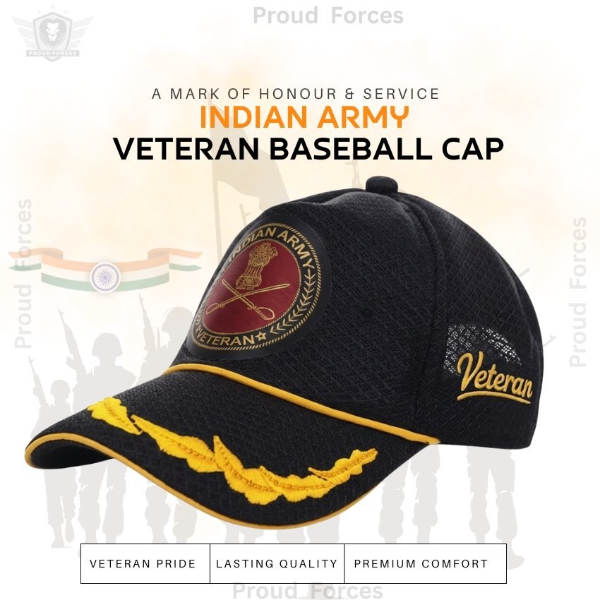Proud Forces Premium Quality Indian Army Officers’ Veteran Baseball Cap (Black Color) is designed to honour the courage, discipline, and service of Indian Army veterans. Featuring a veteran-inspired design, this premium cap is perfect for daily wear, official events, veteran gatherings, or gifting, combining comfort, style, and respect.