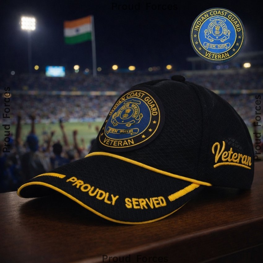 Proud Forces Premium Quality Indian Coast Guard (ICG) Proudly Veteran Baseball Cap (Black Color) is designed to honour the courage, dedication, and service of Indian Coast Guard veterans. Featuring the “Proudly Served” insignia with the ICG emblem, this premium cap is perfect for daily wear, veteran gatherings, official events, and respectful gifting—combining durability, comfort, and national pride.