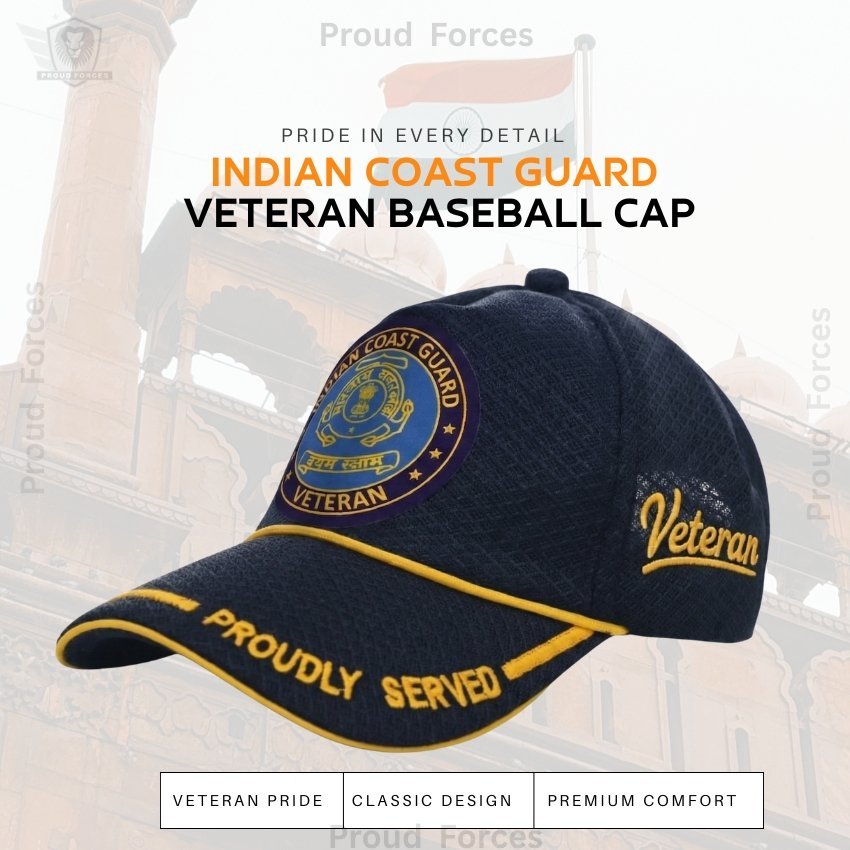 Proud Forces Premium Quality Indian Coast Guard (ICG) Proudly Veteran Baseball Cap (Blue Color) is designed to honour the courage, dedication, and service of Indian Coast Guard veterans. Featuring the “Proudly Served” insignia with the ICG emblem, this premium cap is perfect for daily wear, veteran gatherings, official events, and respectful gifting—combining durability, comfort, and national pride.