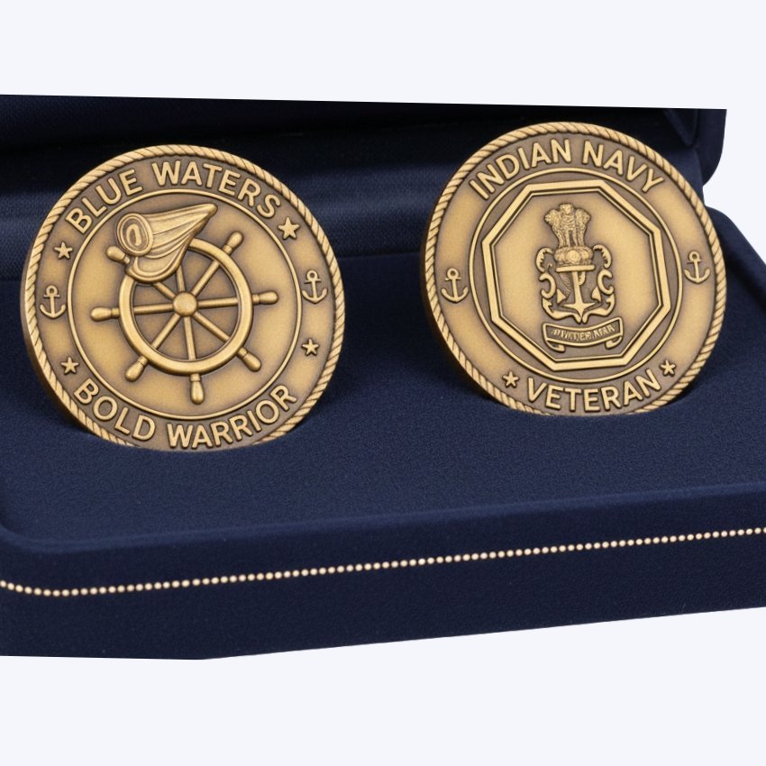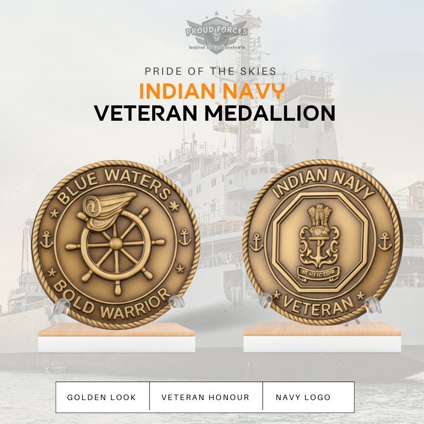 The Indian Navy Medallion (2.5 Inch, Golden) by Proud Forces is a premium commemorative piece created to honour the courage, valour, and service of those who safeguarded the nation at sea. Crafted with a rich golden finish, this medallion represents pride, strength, and the enduring legacy of the Indian Navy. A meaningful keepsake for veterans, defence supporters, and patriotic gifting.