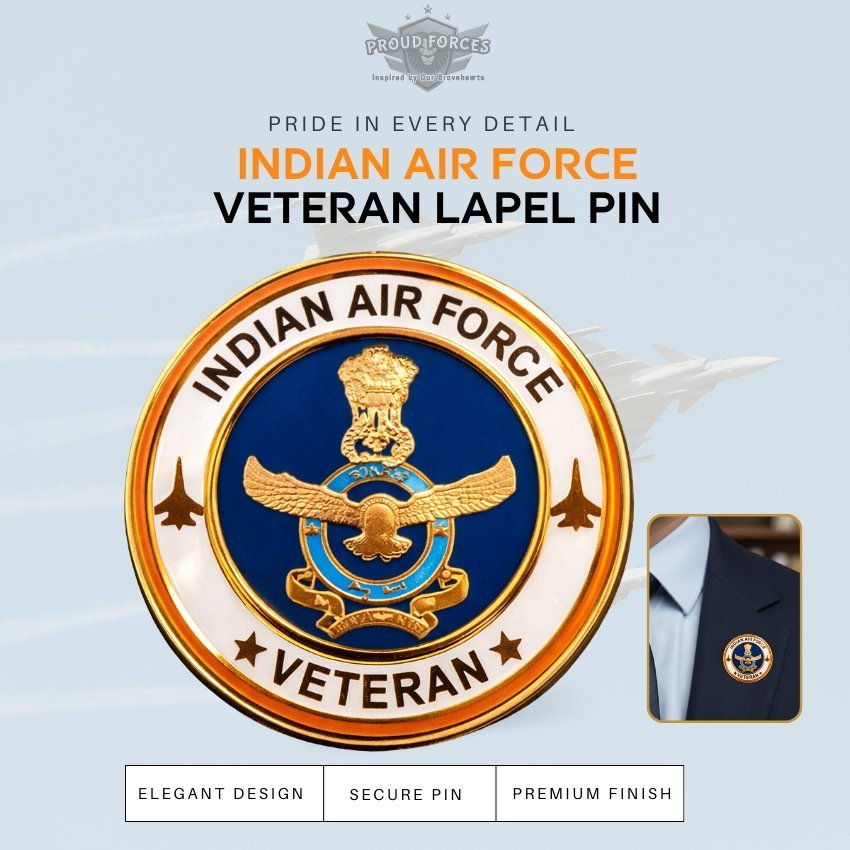 Show your pride in the skies with the Proud Forces Premium Quality Indian Air Force Veteran Blazer Lapel Pin. Designed with fine detailing and a polished finish, this lapel pin represents honour, courage, and service in the Indian Air Force. Perfect for blazers, suits, and formal wear, it adds a subtle yet meaningful patriotic touch.