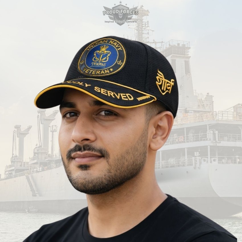 Proud Forces Premium Quality Indian Navy Proudly Baseball Cap (Black Color) is designed to honour the courage, dedication, and service of Indian Navy veterans. Featuring the “Proudly Served” design, this premium cap is perfect for daily wear, veteran gatherings, official events, or gifting, combining elegance, comfort, and respect.