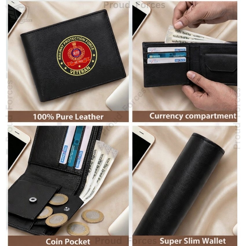 The RPF Veteran Black Leather Wallet for Men by Proud Forces is a premium classic wallet crafted from 100% genuine black leather, combining durability, elegance, and veteran-inspired pride. Featuring a centrally placed RPF Veteran sticker, this super slim wallet keeps your cash, cards, coins, and essentials organized, making it perfect for daily use, office, or travel.