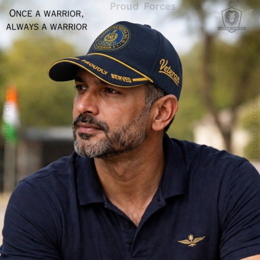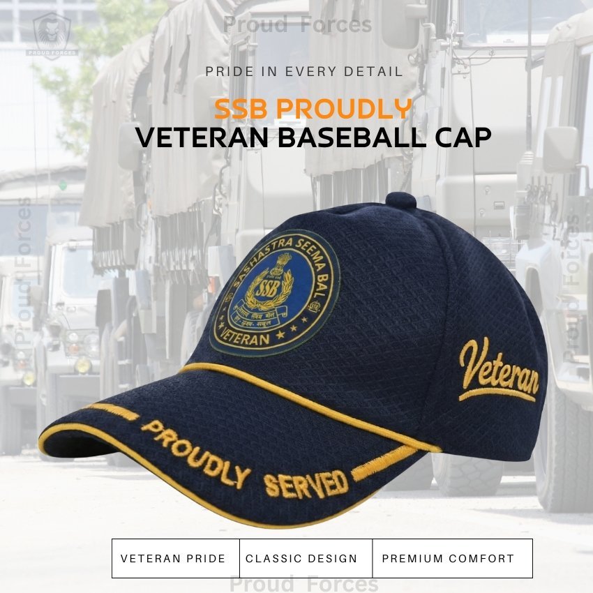 Proud Forces Premium Quality SSB Proudly Veteran Baseball Cap (Blue Color) is designed to honour the courage, discipline, and dedicated service of Sashastra Seema Bal (SSB) veterans. Featuring the “Proudly Served” insignia with the SSB emblem, this premium cap is ideal for daily wear, veteran gatherings, official events, and respectful gifting—combining durability, comfort, and force pride.
